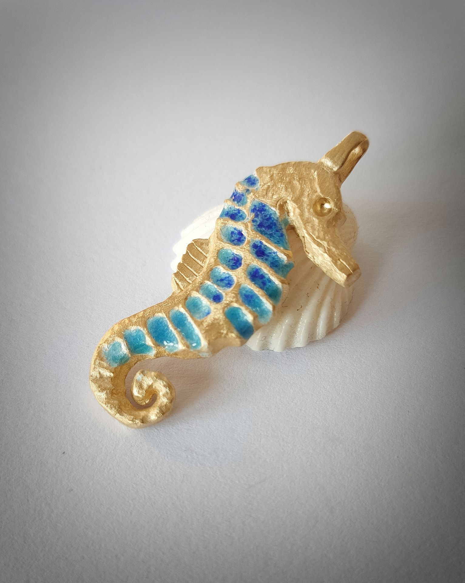 Realizado en plata de ley banyado en oro amarillo, esmaltado al fuego.