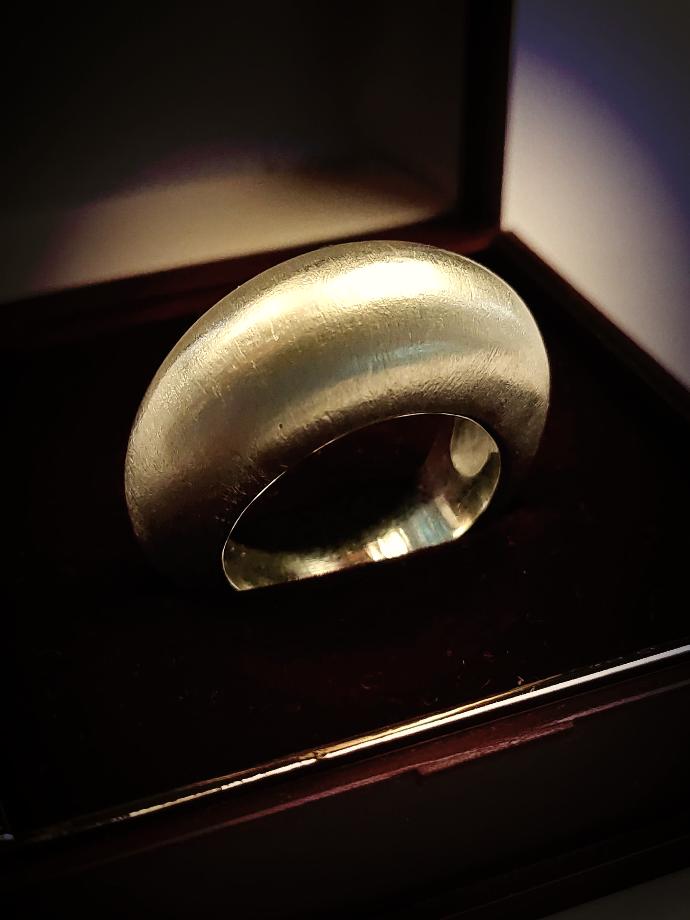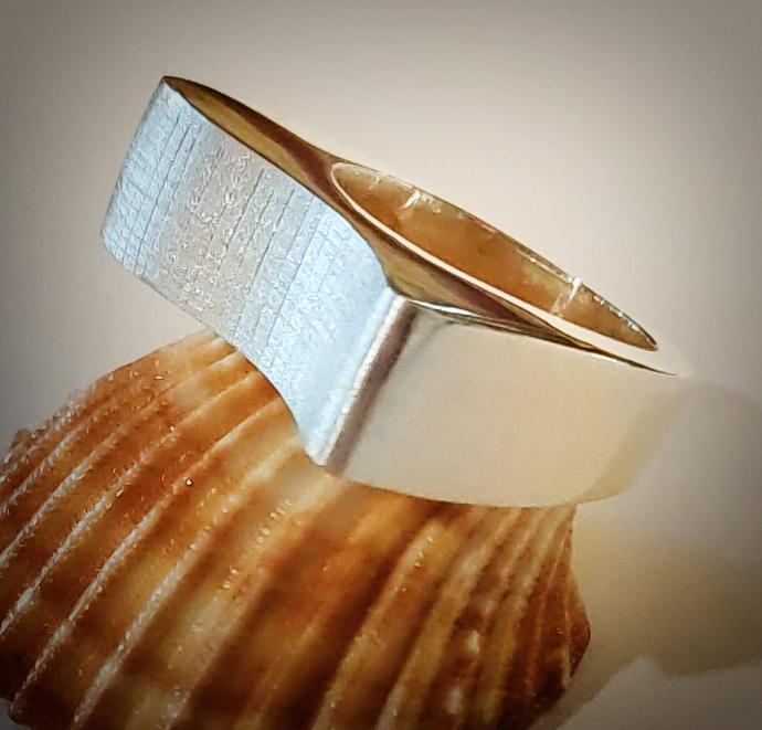 Anell artesanal realitzat amb plata de llei. Les impureses que la formen les revertim per donar l'acabat setinat. sense arestes perquè la llum jugui capritxosament damunt la superfície